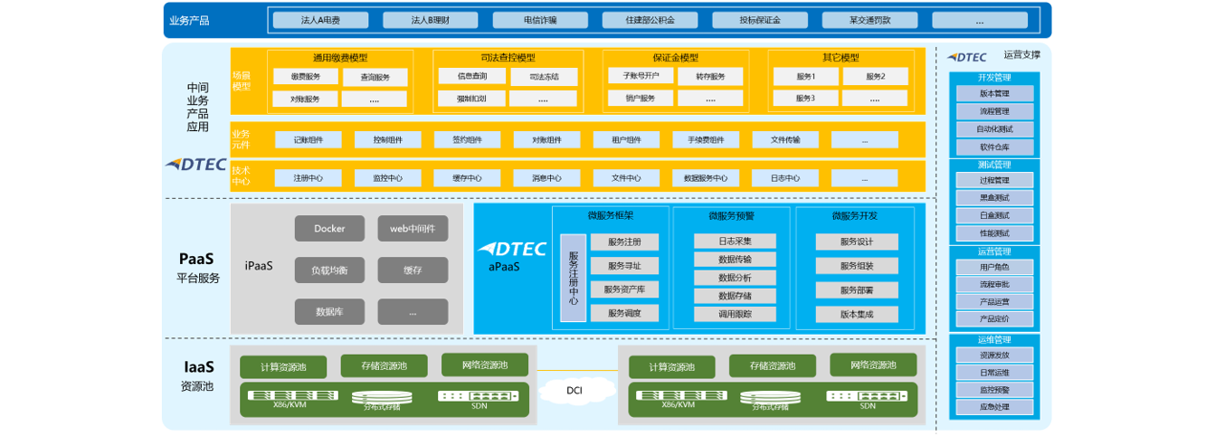 基础设施方面按照高效稳定、经济实惠的要求,构建全行IaaS平台,对计算、存储、网络统一管理和调度。